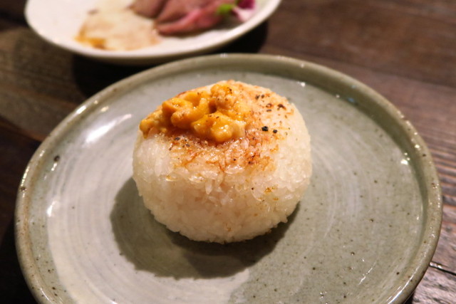 でもハツはおにぎりまで食べちゃいます。こちらが「炉端の焼おにぎり うにをたっぷり」。