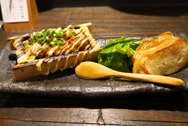 濃厚なウニに、クリーミーなソースとネギが乗って和と洋の要素がミックスされています。最近はフレンチやイタリアンで日本酒を合わせるように、こうやって洋風スタイルのおつまみに日本酒を合わせるのもイイですね!