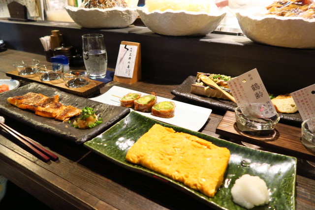 カウンターは日本酒とお料理でいっぱい!