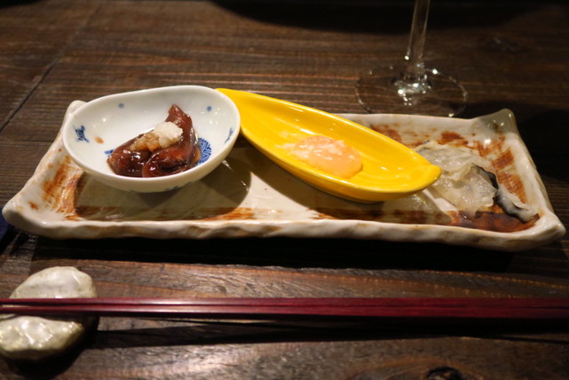 お通しは、蛍烏賊など飲兵衛の盛り合わせ。