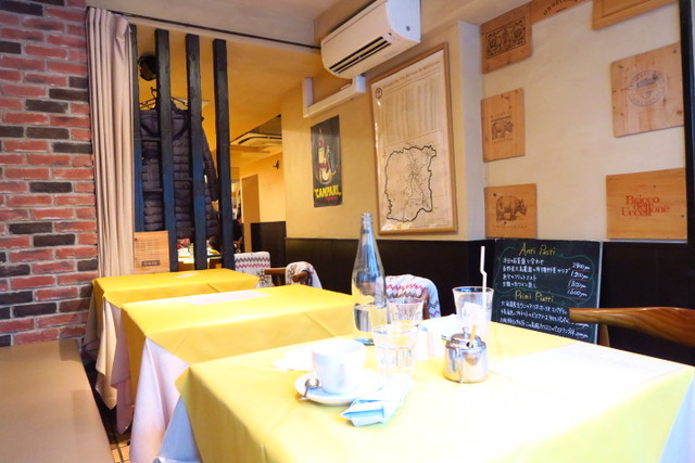 黄色が映える店内は、テーブルとカウンターで30席。