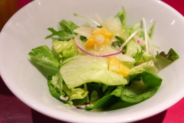 シンプルなグリーンサラダにイタリアンドレッシング。
