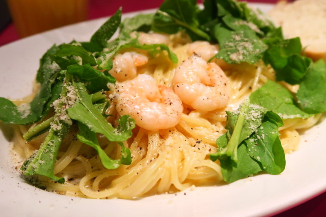 細めでもちもちっとしたパスタに、さっぱりとしたホワイトソースがよく絡んでいます。