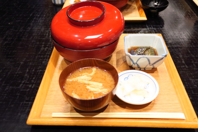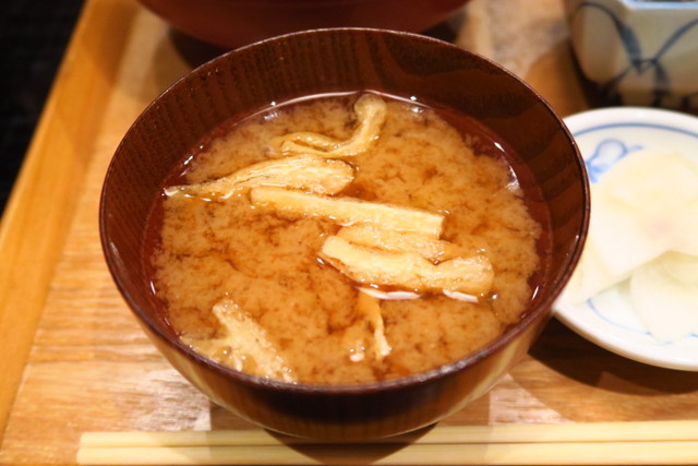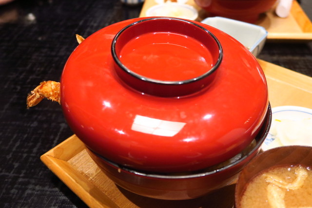 鰻が入っているとはいえ、天丼だからついてくるのは肝吸いじゃなくって、お味噌汁。