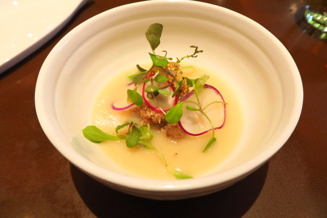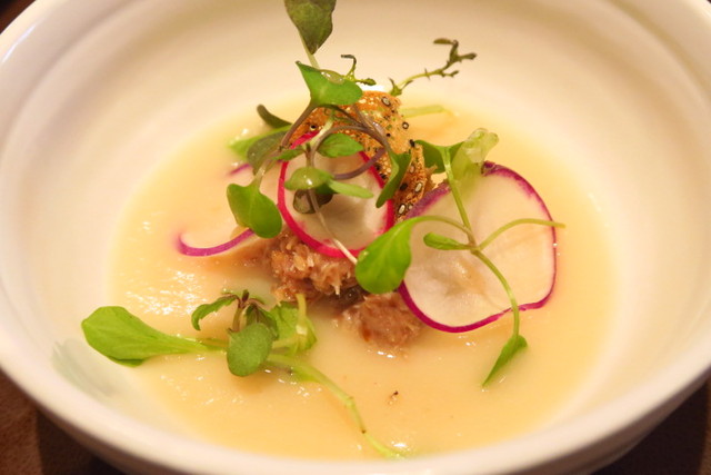 続いて、「大根のブルーテを銘柄豚のフォンダンで」。