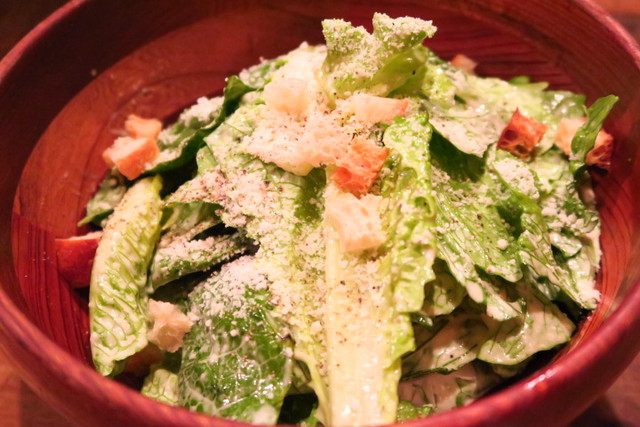 続いて、ザクザク切りのロメインレタスを使った「シーザーサラダ」。