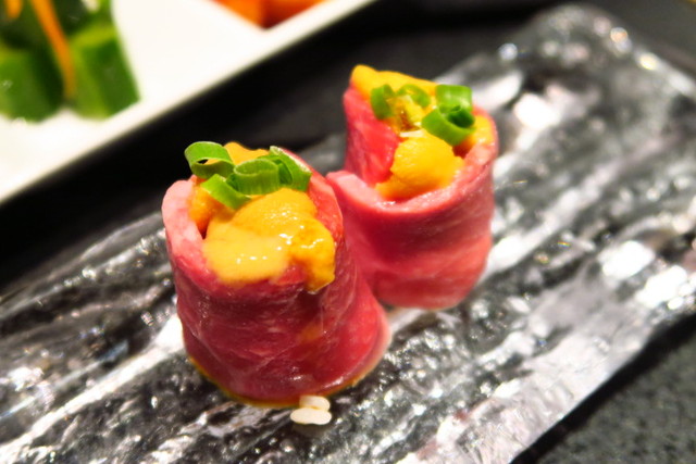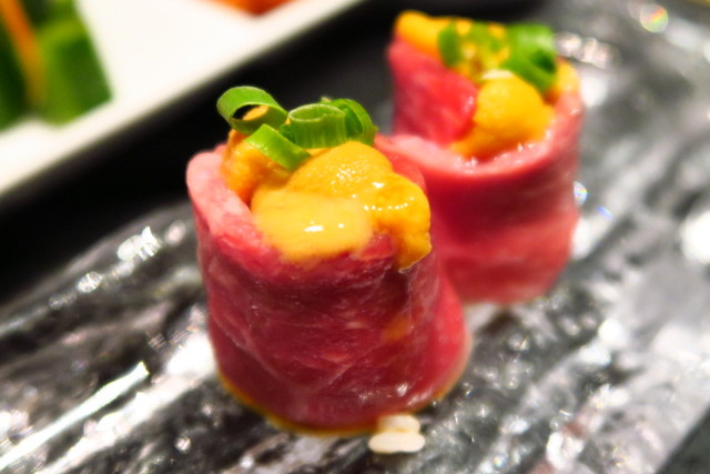 そして、何気にハツ体験だった「生ウニの肉巻き」。