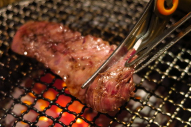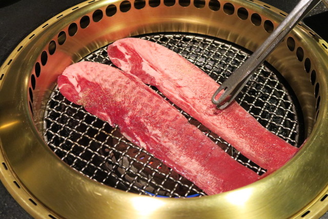 そしてハラミは塊で焼いていきます。