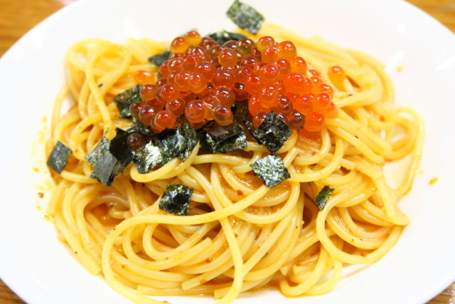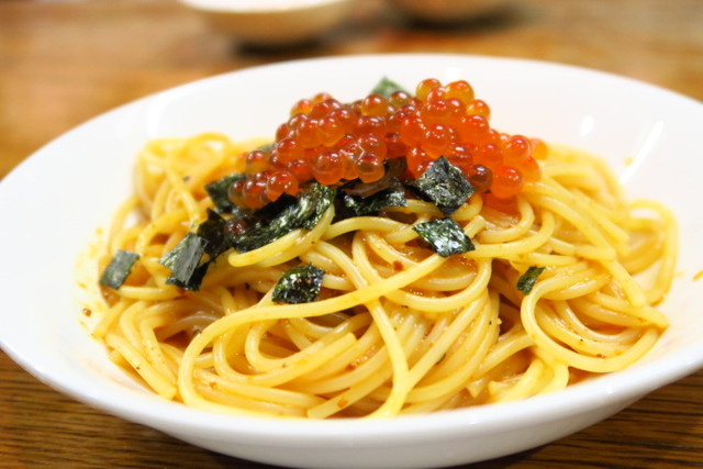 太めのスパゲッティに良く絡むウニのソースと、上にたっぷりと乗ったプチプチのイクラ。