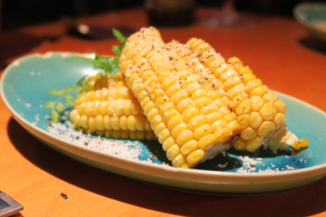 旬の玉蜀黍を使った「揚げトウモロコシペコリーノチーズがけ」。