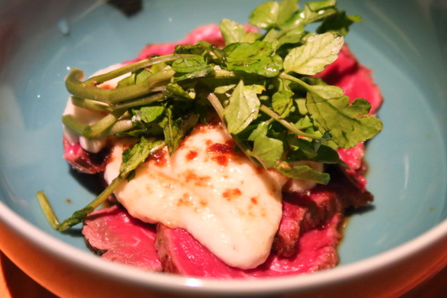マグロの山かけからインスパイアされた一品で、鮪のかわりに和牛を使っちゃおうと言うもの。