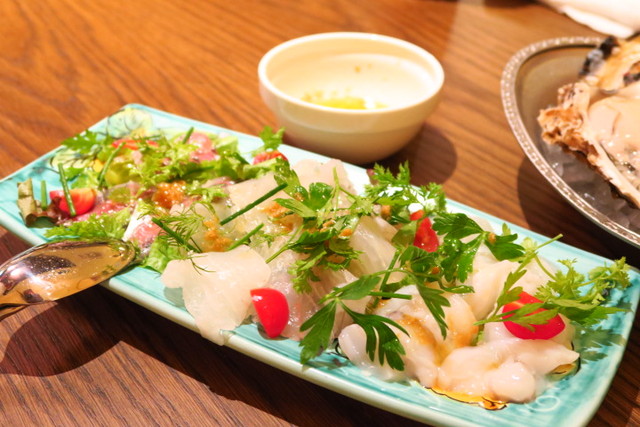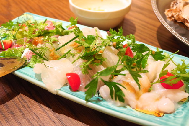 そして水槽から揚げたばっかりの鮮魚で作った「名物チロンボカルパッチョ」。