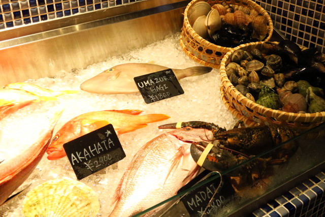 メインディッシュは、アイスベッドから好きなお魚を選んで、それを好みの調理法で楽しむスタイル。