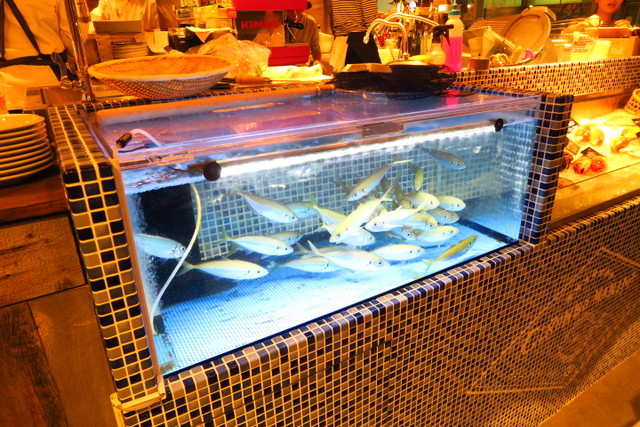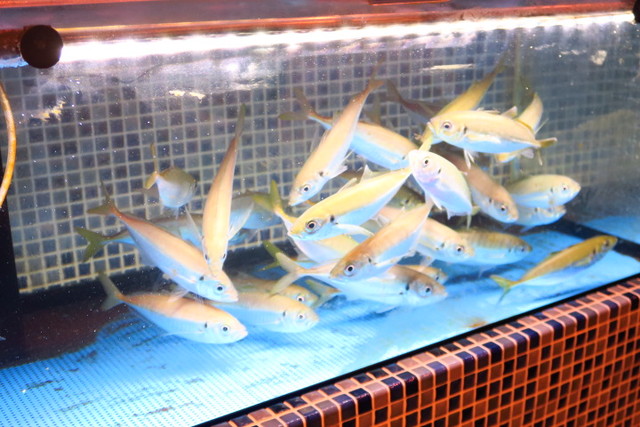 ここで泳いでいる鯵を目の前で捌いて、カルパッチョにしていただけるんです。
