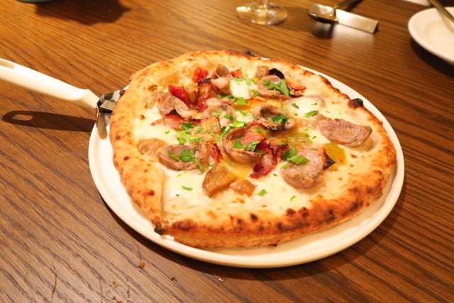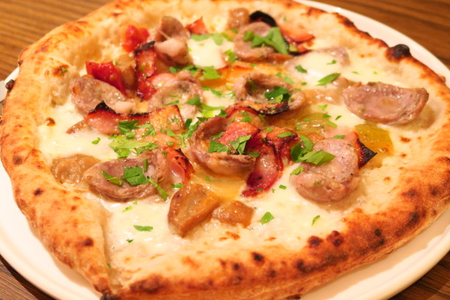 ガッツリお肉が食べたい!というオーダーで、サルシッチャを使ったピッツアを焼いていただきました。