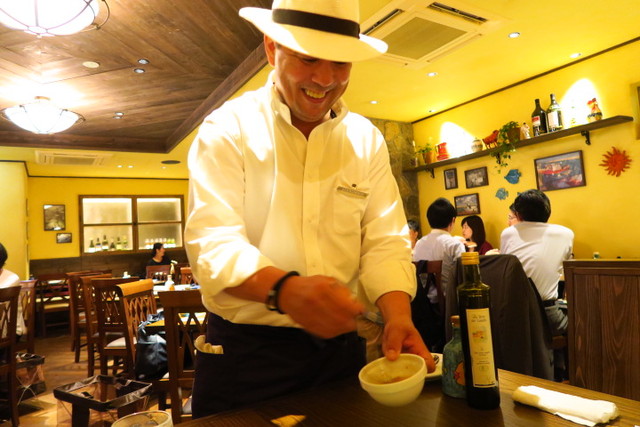 オリジナルのドレッシングを目の前で作ってくれて、最後の仕上げです。