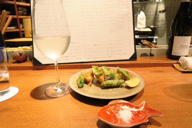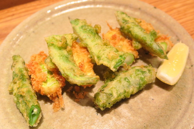 アスパラとインゲンという夏らしさ満点の揚げ物です。