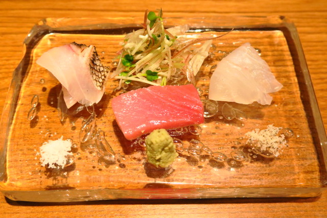 このお皿がまた美しい。お刺身がキラキラして見えます。