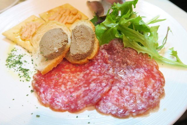 サラミにレバーパテなど、ワインが進むラインナップ。