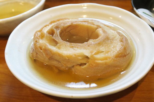 大きな車麩丸ごと、お出汁にひたっひたに浸かっています。