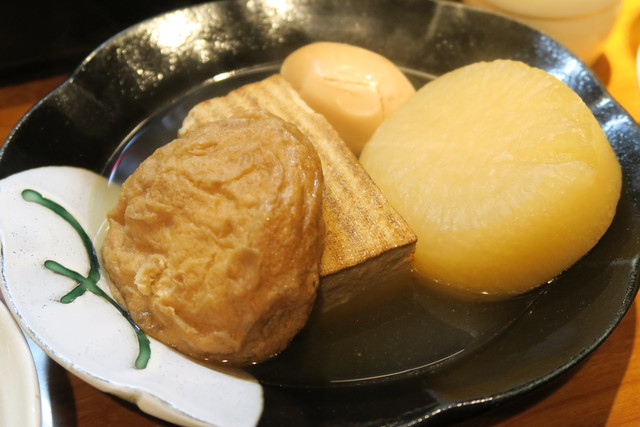 大根やお豆腐もこんなに色が変わるくらいに、お出汁がしみています。