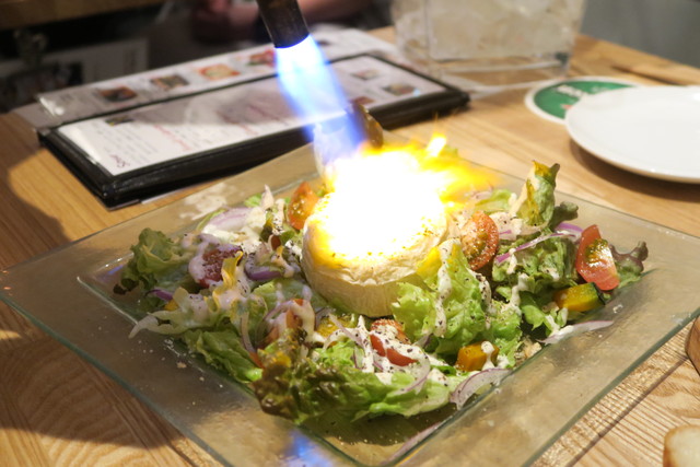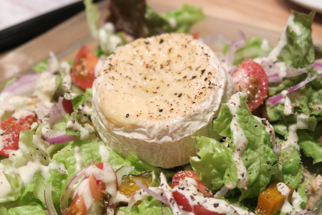 カマンベールチーズが丸ごと乗ったサラダ。