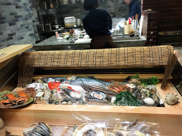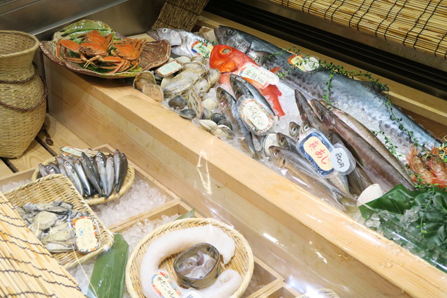 たくさんの鮮魚がならぶショーケースから、好きな素材を好きな調理方法で楽しめるというスタイルです。