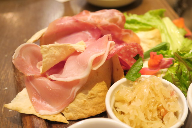 生ハムやサラミ、ザワークラウトなど盛りだくさんで、