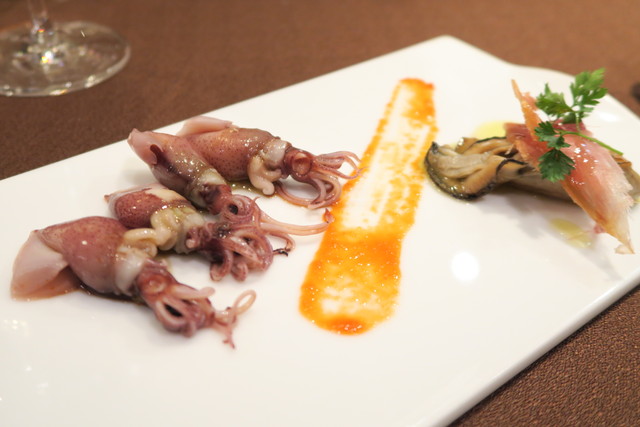 次のお料理をスタンバイしながら、白ワインをいただきます。