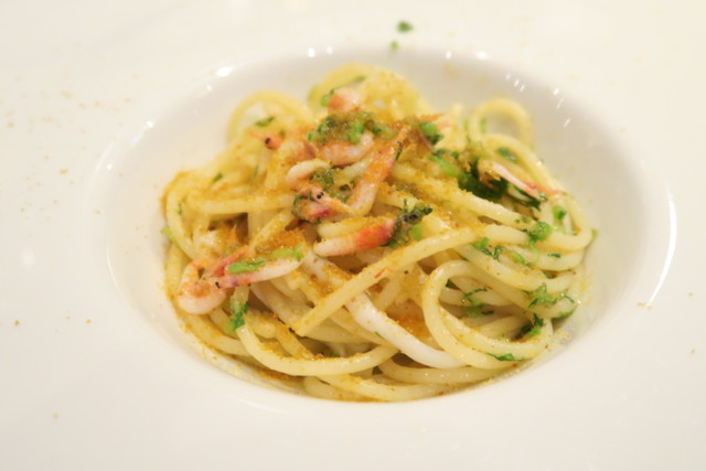 たっぷりのカラスミを絡めながら、桜海老の風味を楽しみながらいただきます。