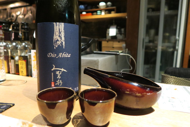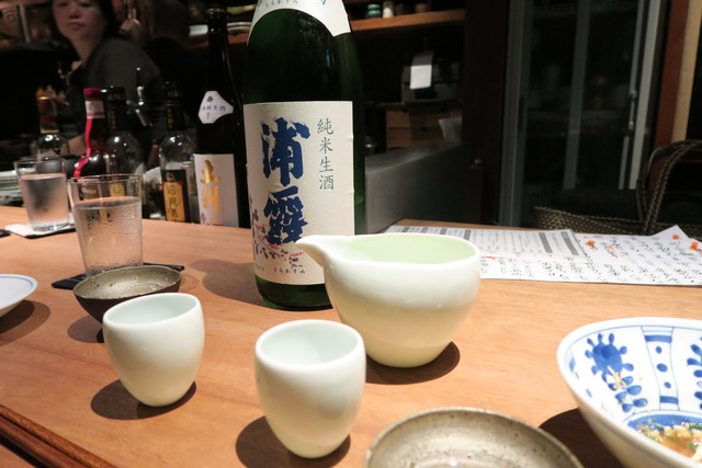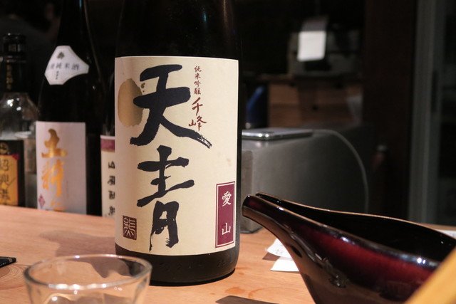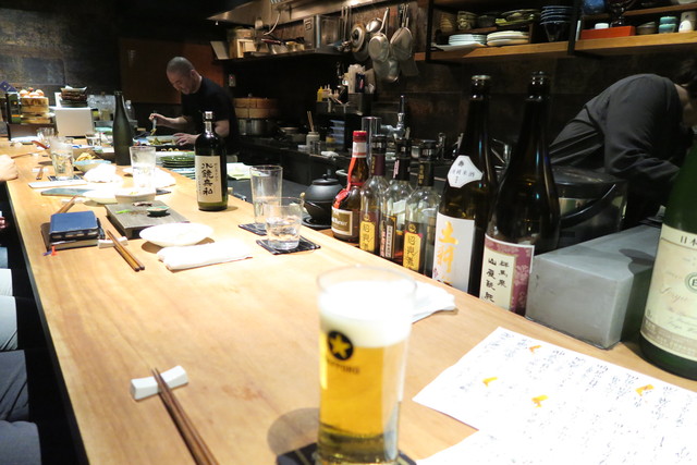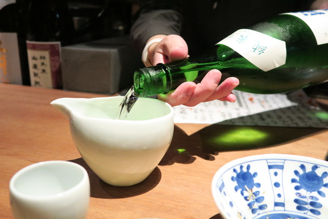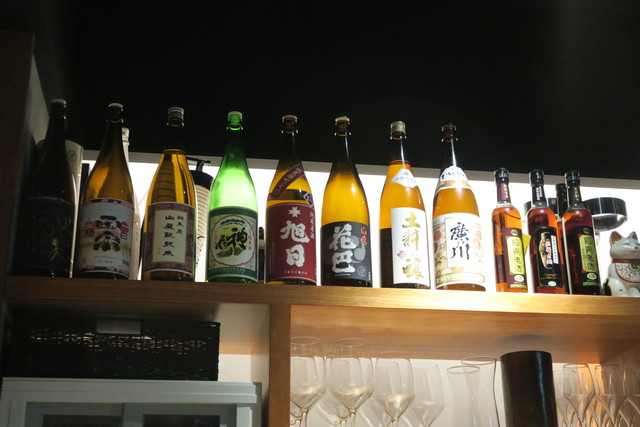 カウンターの奥には日本酒がずらりと。