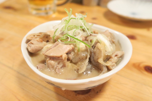 さっそくお料理をオーダー。もつ煮込みはぷるんぷるんのもつがおいしい。