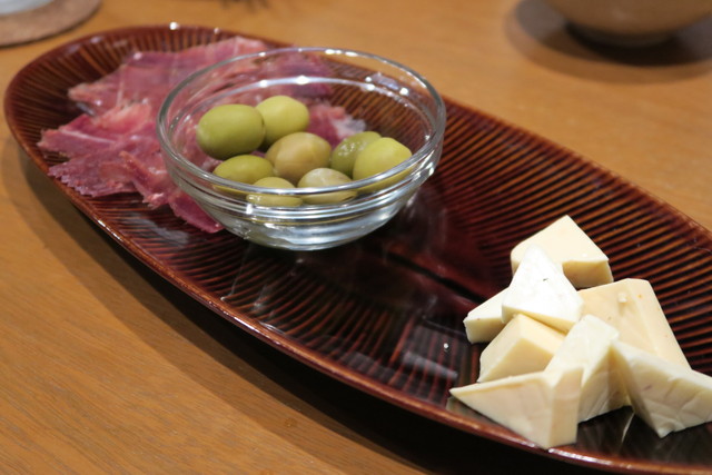 チーズやオリーブ、そして生ハム。ワインにおともにぴったり。