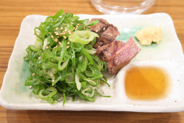 厚切りのレバーですが、炙ることでさらに柔らかく、胡麻油でいただく最高のおつまみ。