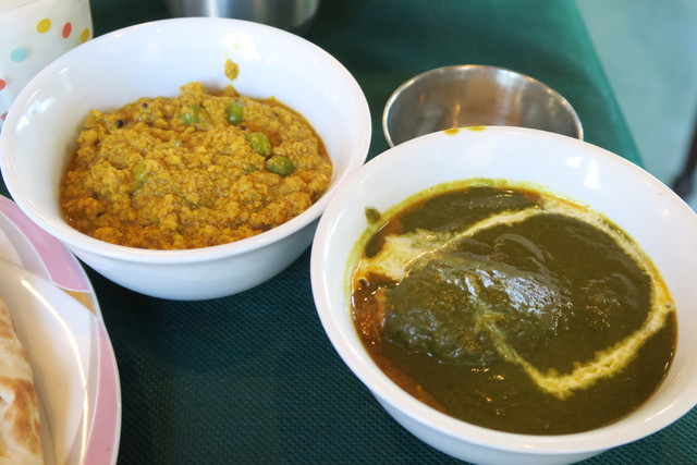 ハツがチョイスしたのは、キーマカレーとほうれん草のカレー。