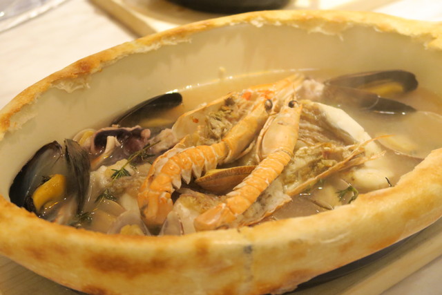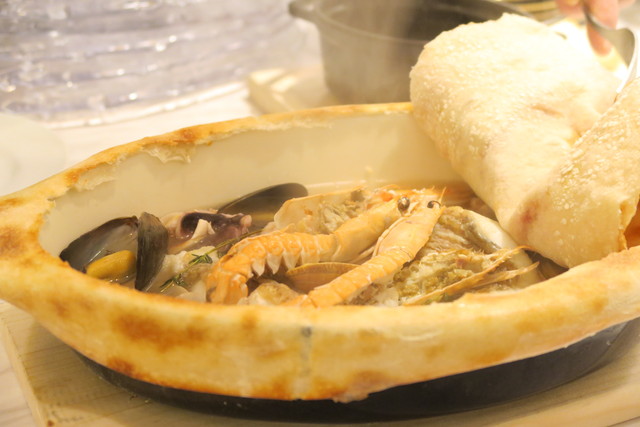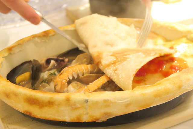 自家製のパーネで釜をし、中にはたっぷりの魚介が隠れています。