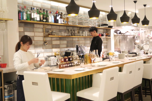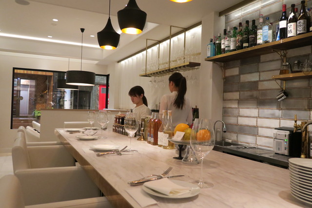 カウンターもゆったり座れる幅をとっていて、少し灯りが落としてある大人の雰囲気。