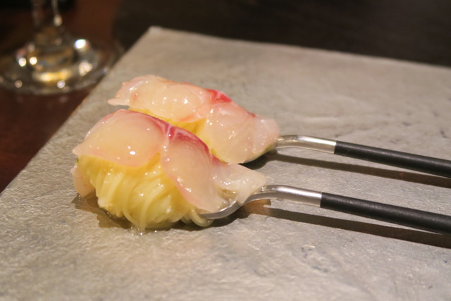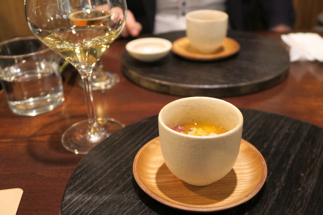 コースの最初は、鮮魚の一口冷製カッペリーニ。