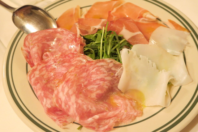 最初にオーダーしたのは、生ハムとサラミの盛り合わせ。