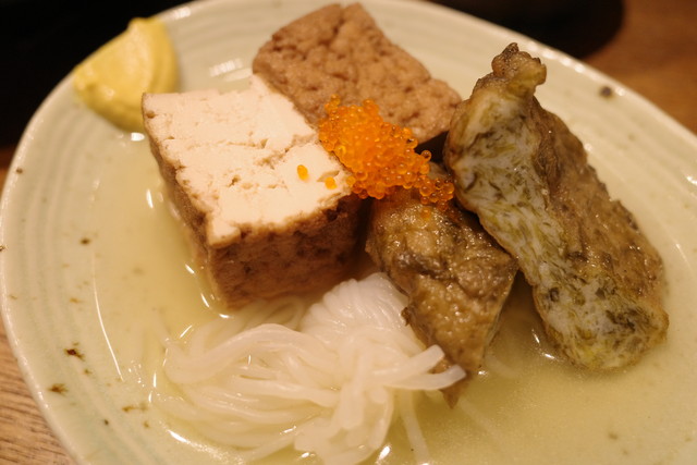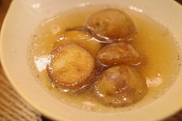 おでんの具に合わせてお出汁を変えていて、じゃがいもはコンソメ風味?でピリッと胡椒が効いている感じ。これは美味しい〜!