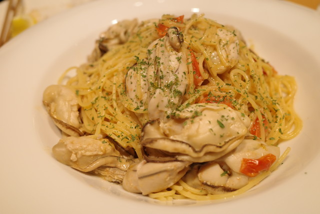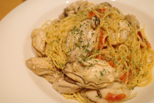 大きな牡蠣がまるっと入った、牡蠣パスタ。