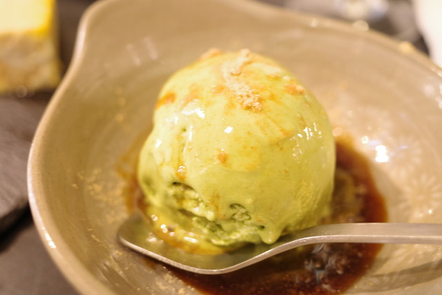 最後にいただいたのは抹茶アイスなのですが、ブレてますね…。多分酔ってます。