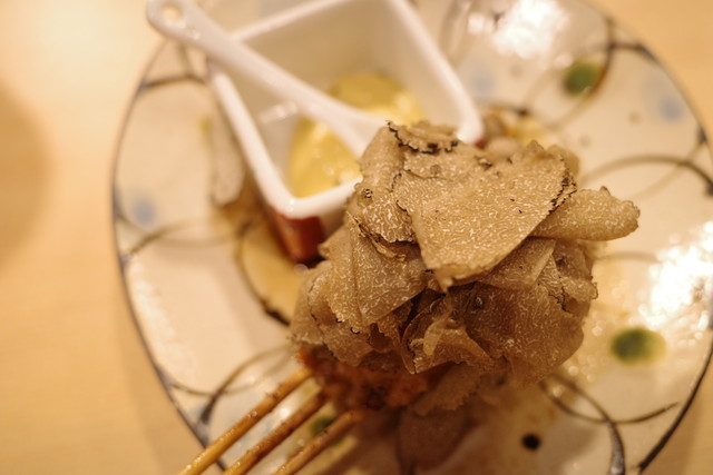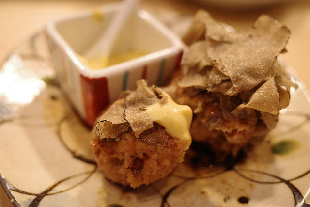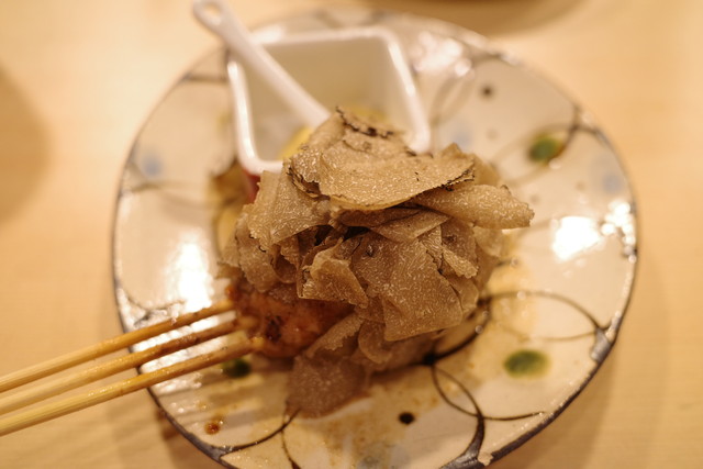 新鮮でジューシーなつくねの中にはふんだんにフォアグラが仕込まれ、さらにはプラスのオプションとして、これでもかと黒トリュフが贅沢にトッピング! 贅沢な至福の時に心が満たされてました
