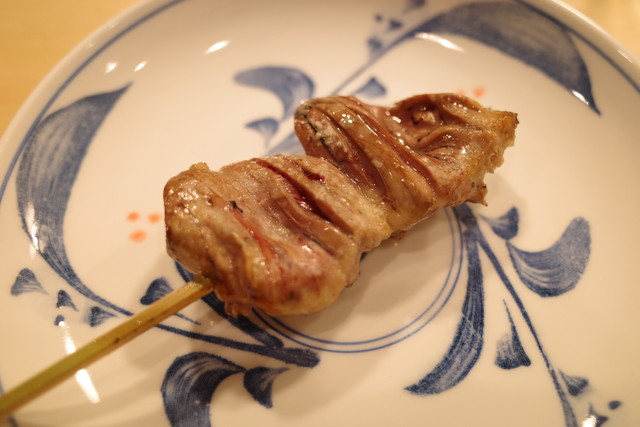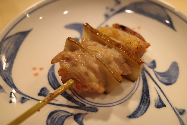 こちらは、せせりと牛蒡をお出汁で焼き上げた串。