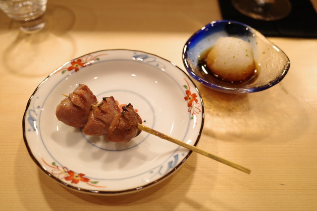 お料理は大将のおまかせコースです。焼鳥とつまみが交互に出るスタイル。
