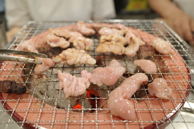 七輪の上で芝浦食肉市場直送の新鮮なホルモンを焼いて、ワイワイ楽しみましょう!