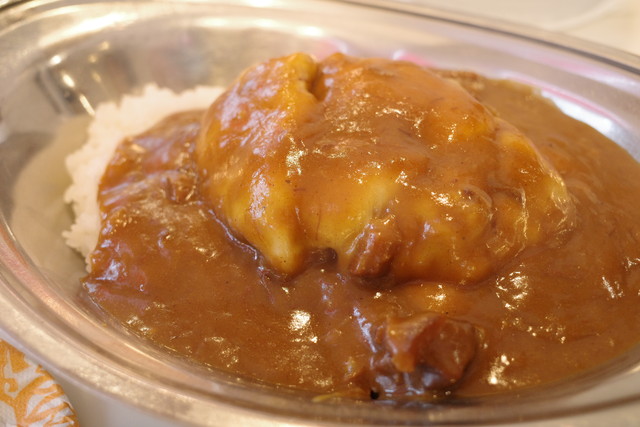 ごはんが隠れるくらいたっぷりとカレーがかかっていて、見た目も百点。
