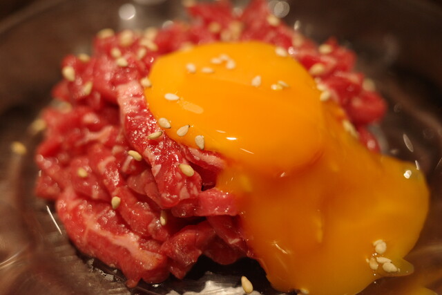 新鮮なお肉だからこそ旨味が楽しめる、神戸太田牛ユッケ。