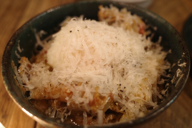パルメザンチーズたっぷりでいただきます。