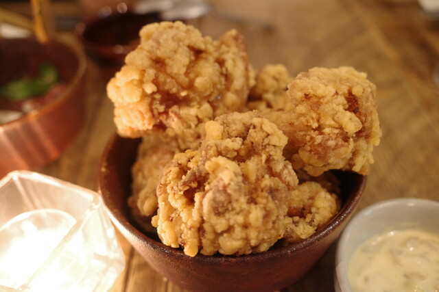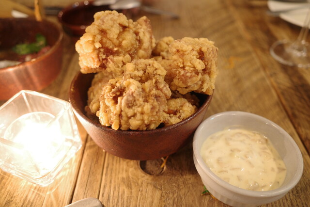 とりもも唐揚げには、奈良漬けマヨをつけていただくスタイル。